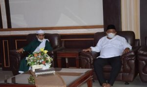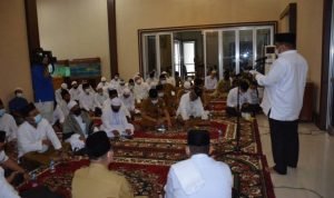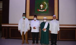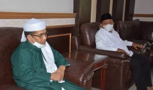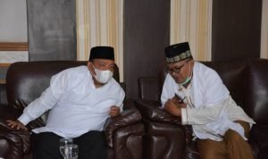 Terlihat, Bupati Langkat Terbit Rencana PA akrab bertukar pikiran, saat menerima silahturahmi Tuan Guru Babusalam DR. Zikmal Fuad MA. Serta para Alim Ulama dan tokoh masyarakat se wilayah Langkat Hilir dan Teluk Aru, di Rumah dinas Bupati Langkat, Stabat, Selasa (2/3/2021). Para Alim Ulama itu, sebelumnya telah diberangkat umroh oleh biaya pribadi Bupati.