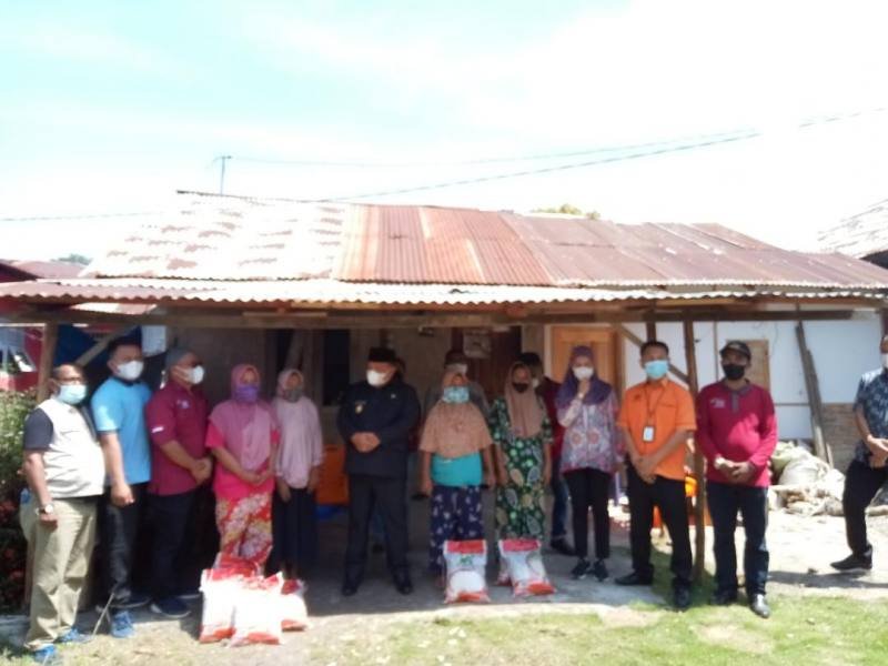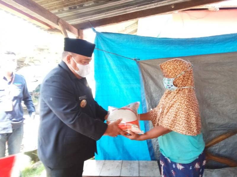 Dihari yang sama, Bupati juga menyerahkan bantuan COVID-19, berupa bantuan beras pembatasan kegiatan masyarakat (BB-PPKM) Tahun 2021.