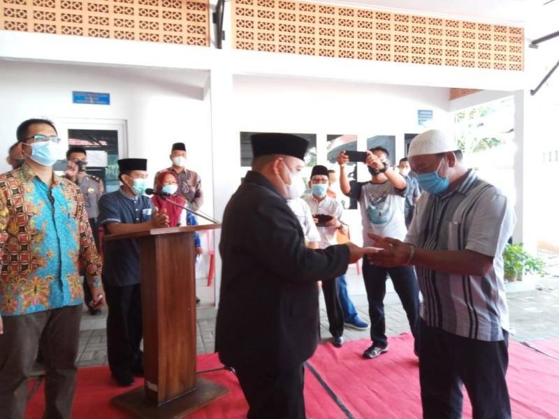 Langkat, POL | Bupati Langkat Terbit Rencana PA menyerahkan bantuan sosial (Bansos) kepada bilal mayit, penggali kubur dan abang becak se Kabupaten Langkat, di Aula Kantor Camat Kuala, Langkat, Jum’at (6/8/2021).