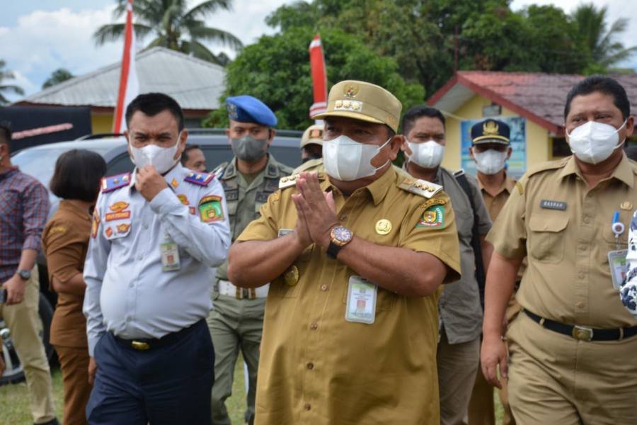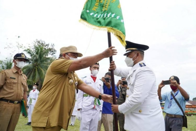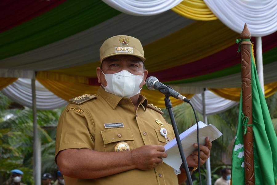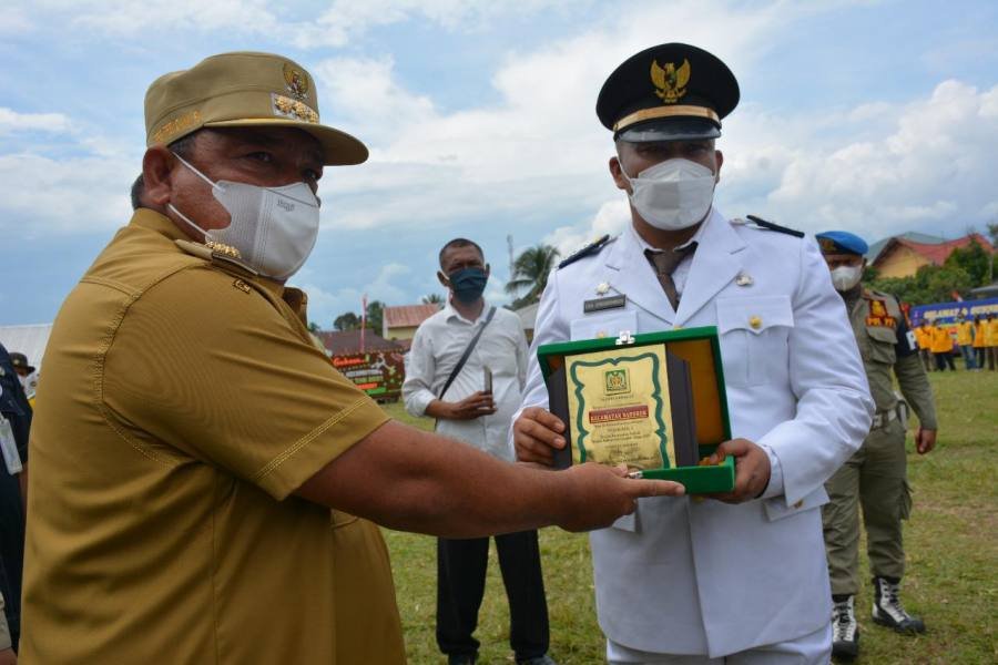Bupati Langkat Terbit Rencana PA  menyerahkan Tunggul Kecamatan dan Kelurahan terbaik tingkat Kabupaten Langkat, di Lapangan Sepak Bola SMP N 1 Bahorok, Kecamatan Bahorok, Langkat, Selasa (19/10/2021).
