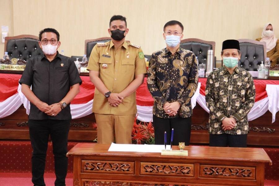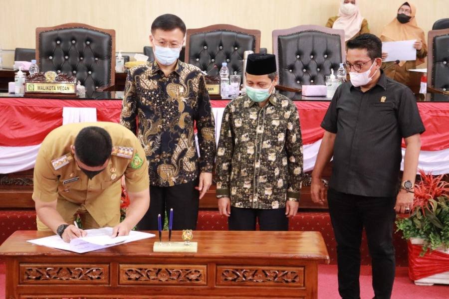Persetujuan ditandai dengan penandatanganan bersama oleh Wali Kota Medan Muhammad Bobby Nasution dengan pimpinan DPRD Medan, usai penyampaian laporan panitia khusus (pansus) serta pendapat seluruh fraksi.