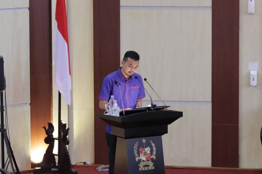 Rapat Paripurna dipimpin Ketua DPRD Medan Hasyim, SE didampingi wakil ketua Rajuddin Sagala dan diikuti segenap anggota dewan baik secara luring maupun daring serta Plt sekwan Alida SH Mhum.
