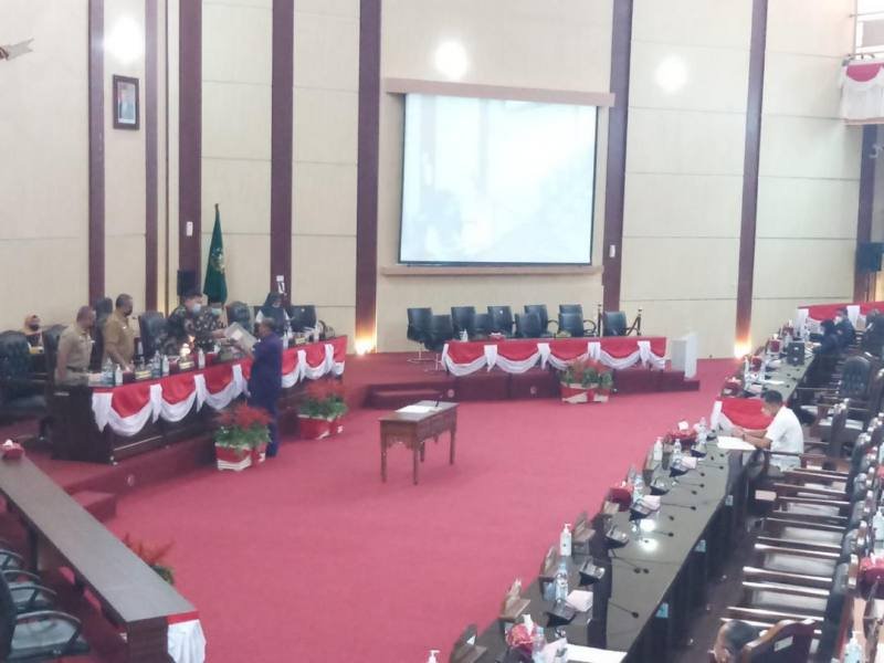 DPRD Kota Medan dan Pemerintah Kota (Pemko) Medan melakukan persetujuan bersama atas Rancangan Peraturan Daerah (Ranperda) Kota Medan tentang Ketentraman dan Ketertiban Umum menjadi Peraturan Daerah (Perda) Kota Medan Tahun 2021, di Ruang Rapat Paripurna Gedung DPRD Kota Medan, Senin (18/10/2021).