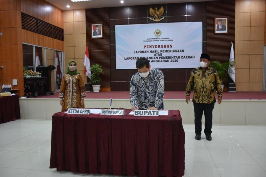 Medan, POL | Dua tahun berturut Pemerintah Kabupaten Langkat dibawah pimpinan Terbit Rencana PA dan H.Syah Afandin,SH berhasil meraih opini Wajar Tanpa Pengecualian (WTP), atas laporan keuangan pemerintah daerah (LKPD) Kabupaten Langkat tahun anggaran 2020 dari BPK RI Perwakilan Sumatera Utara.