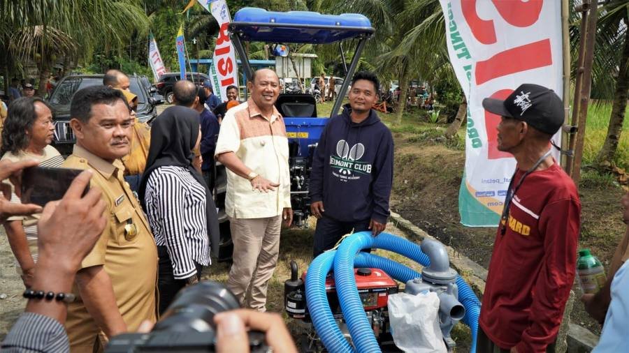 Selanjutnya menyerahkan bantuan traktor roda empat (TR4) kepada Kelompok Tani Telagah B, Traktor roda dua (TR2) kepada Kelompok Tani Rame Gawe Sirapit. Pompa Air kepada Kelompok Tani Rudang Sei Bingai.