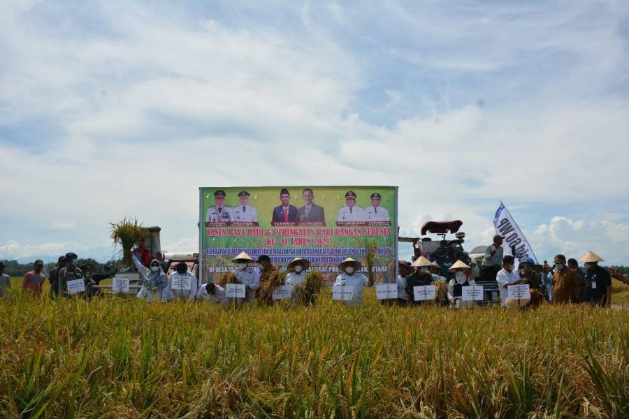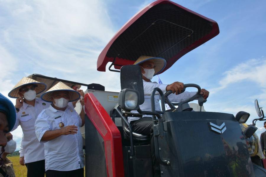 Pemerintah Kabupaten Langkat melaksanakan panen padi raya di Kecamatan Sirapit Kabupaten Langkat, Selasa (26/10/2021).