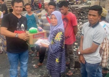 Bane Raja Manalu Bagi Sembako dan Pakaian Kepada 66 Korban Kebakaran di Asahan