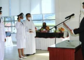 Samosir, POL | Bupati Samosir Vandiko T. Gultom mengambil sumpah/ janji 2 kepala desa Pengganti Antar Waktu (PAW) di Aula...