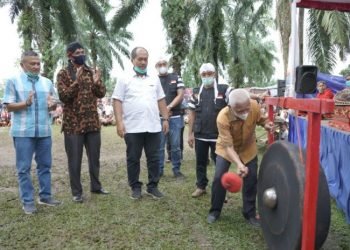Asahan, POL | Bupati Asahan, H.Surya, B.Sc membuka Gebyar Seni Budaya Reog Gembong Bawono ditandai dengan memukul gong di JL.langsat...