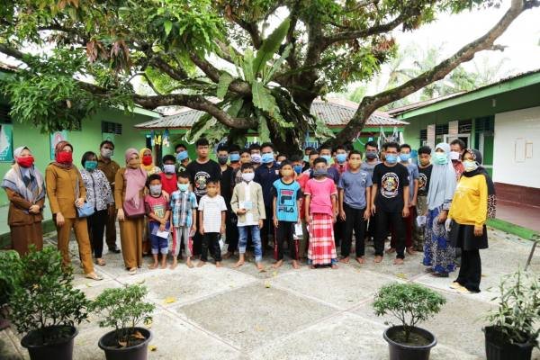 Rantauprapat, POL | Dinas komunikasi dan Informatika (Diskominfo) Labuhanbatu bersama Dharma Wanita Persatuan Diskominfo berbagi masker dan semprot disinfektan di panti...