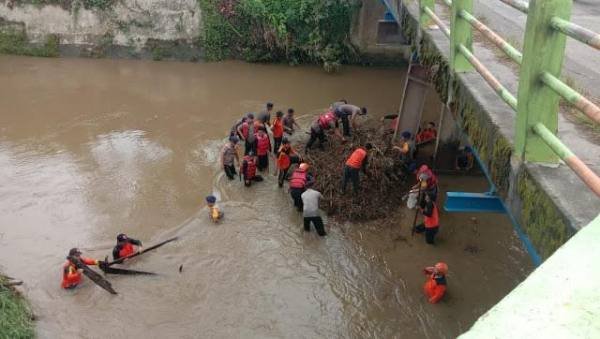 Cegah Banjir, Duo Danyon Binjai Bersihkan Aliran Sungai Dari Sampah