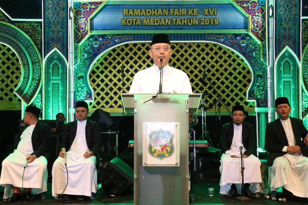 Wali Kota Medan Dzulmi Eldin membuka Ramadhan Fair XVI tahun 2019 di Taman Sri Deli Jalan SM Raja Medan, Rabu...