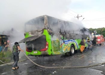 Simalungun, POL | Bus pariwisata dengan nomor polisi BK 7030 TM, terbakar di depan Gereja GKPS Tigarunggu di Jalan Besar...