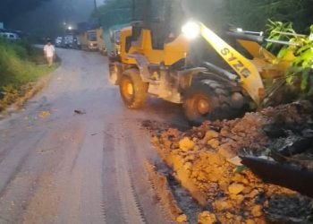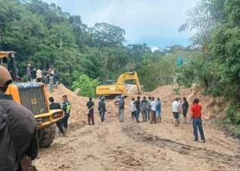 Taput, POL | Pembersihan material longsor yang menimbun badan jalinsum akibat guncangan gempa bumi 5,5 magnitudo mampu dibersihkan petugas dalam...
