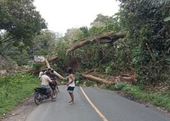 Tapsel, POL | Akibat angin kencang yang melanda, pohon beringin tumbang dan menimpa satu rumah warga di Tobotan, Desa Aek...