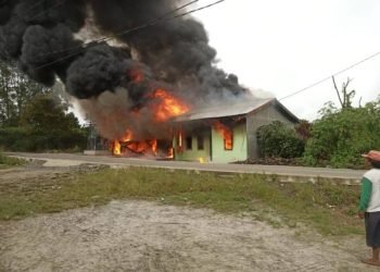 Dairi, POL | Tiga rumah permanen terbakar di Barisan Nainggolan, Desa Parbuluan III, Kecamatan Parbuluan, Kabupaten Dairi, Jumat (21/2/2025). Dari...