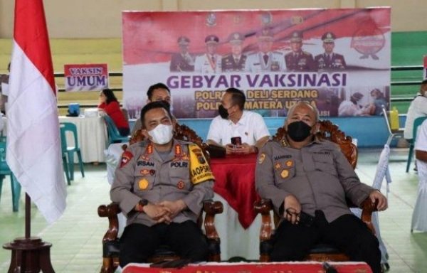 Karo Rena Polda Sumut Kombes Pol Harries Budiharto didampingi Kapolresta Deli Serdang Kombes Pol Irsan Sinuhaji hadir memantau giat vaksinasi yang berlangsung bersama Kabag Ops Polresta Deli Serdang Kompol Choky Santosa Meliala, Kabag Log Polresta Deli Serdang Kompol Soedarjanto dan Para Kasat di Jajaran Polresta Deli Serdang.