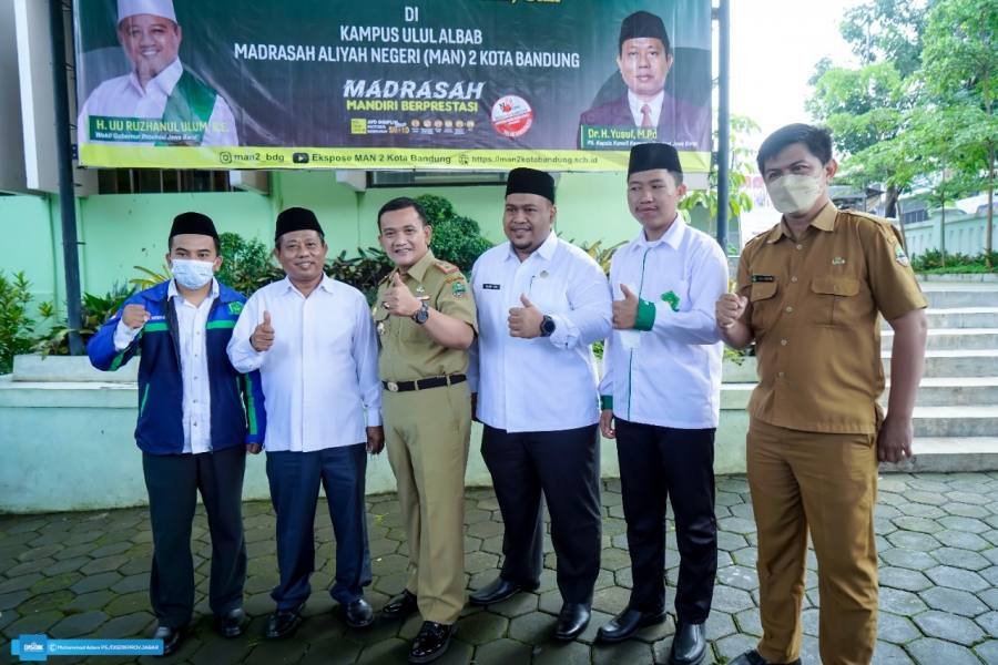 Bandung, POL | Kepala Dinas Pendidikan (Kadisdik) Jawa Barat (Jabar), Dedi Supandhi bersama Wakil Gubernur (Wagub) Jabar, Uu Ruzhanul Ulum menghadiri Pelantikan Pengurus Ikatan Remaja Masjid (IRMA) Kementerian Agama Provinsi Jawa Barat Masa Khidmat 2022-2024 di Madrasah Aliyah Negeri (MAN) 2 Bandung, Jalan Raya Cipadung No. 57, Kota Bandung, Senin (28/3/2022).