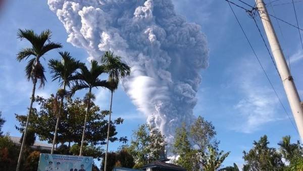 Kepala Pos Pemantau Gunung Sinabung Armen Putra mengatakan, saat erupsi, Gunung Sinabung teramati mengeluarkan kolom abu berwarna hitam dengan intensitas yang tebal. Kolom abu condong menuju Selatan.
