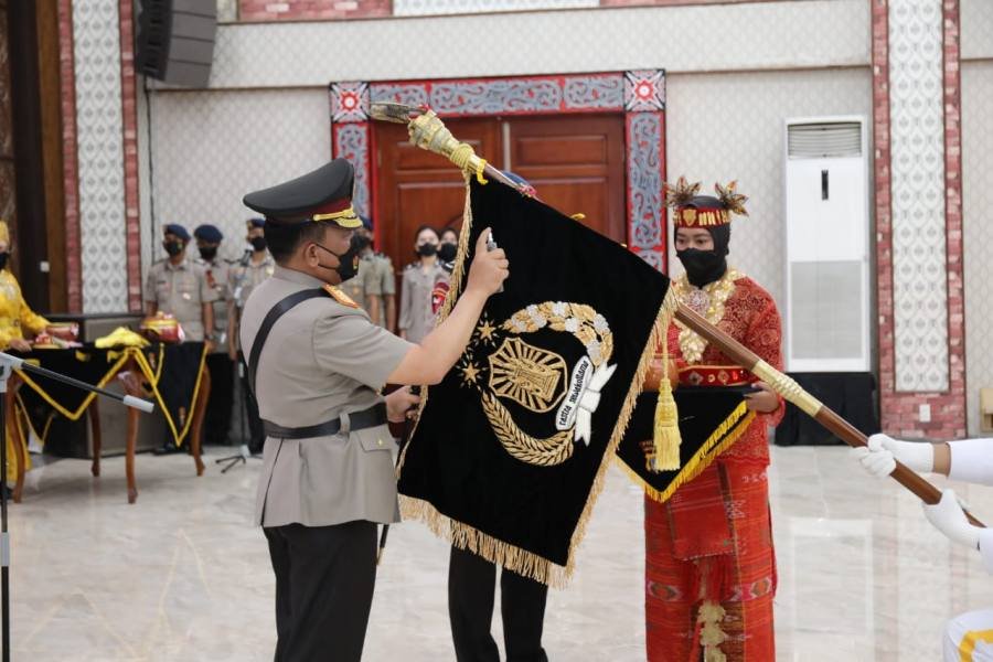 Medan, POL | Menyambut Hari Bhayangkara ke- 76, Polda Sumatera Utara (Sumut) melaksanakan pencucian Pataka Polda Sumut. Upacara ini dipimpin langsung Kapolda Sumut Irjen Pol. Drs. R. Z. Panca Putra S, M.Si di Aula Tribrata Mapolda Sumut, Kamis (30/06) pagi.