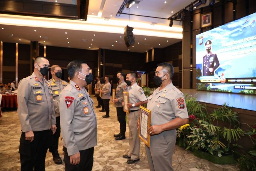 Kapolda Sumut memukul gong sebanyak 5 kali yang menandai kegiatan Musrenbang Polda Sumut Tahun 2022 telah dibuka secara resmi. Dilanjutkan dengan pemberian penghargaan kepada 6 personel Polda Sumut yang berprestasi dalam penilaian AKIP Polri Tahun 2021.
