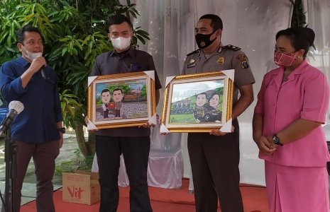 Medan, POL | Kompol Pardamean Hutahaean SH.SIK.MH terharu mendapatkan karikatur sebagai kenang – kenangan dari Club Motor BMCC, Karikatur tersebut yang bergambar sosok dirinya bersama Istri tercinta, Sabtu (13/10/2021).