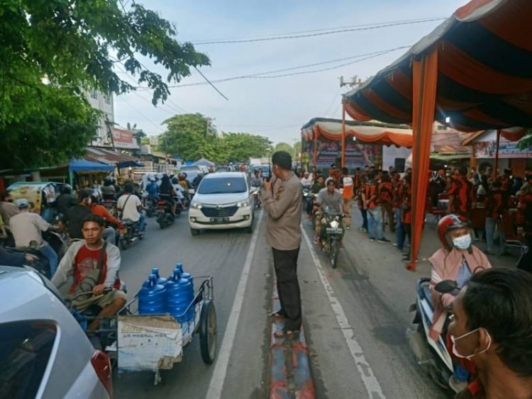 Kapolsek Medan Area, Kompol Faidir, SH, MH bersama Kanit Intel tiba di TKP memberikan himbauan kepada anggota PP yang di bawah koordinasi Zulfahri Nasution, Rabu (5/5/2021).
