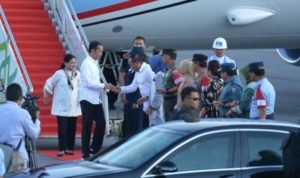 Kedatangan Presiden Jokowi dan rombongan disambut Gubernur Sumut Edy Rahmayadi, unsur Forkopimda Sumut dan sejumlah kepala daerah di Bandara Silangit, Senin (29/7/2019).