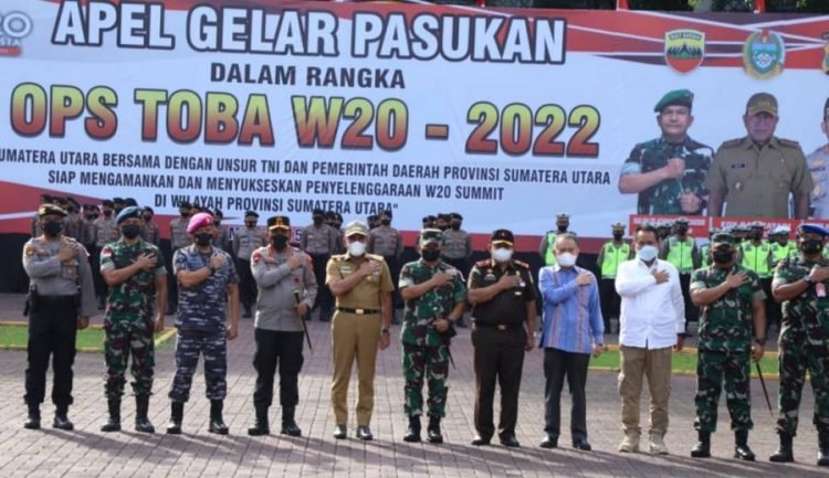 Dalam kesempatan ini Gubernur Sumut Edy Rahmayadi memimpin apel gelar pasukan yang juga turut di hadiri Pangdam I/BB, Kajatisu, Danlantamal, Pangkosek Hanudnas, PJU Polda Sumut, PJU Kodam I/BB serta pasukan pengaman W20 yang terdiri dari TNI, Polri dan unsur pemerintah terlibat lainnya.