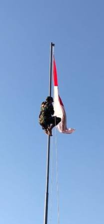 selengkapnya>Banyuwangi, POL | Seorang anggota TNI AD dari Koramil Wongsorejo, Banyuwangi nekat memanjat tiang bendera, saat upacara penurunan bendera dalam...