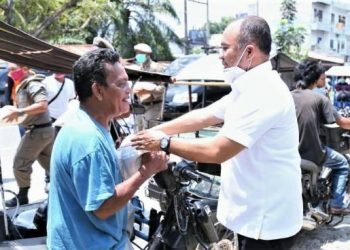 Rantauprapat, POL | Bupati Labuhanbatu H Andi Suhaimi Dalimunthe secara langsung memberikan sembako kepada para pengemudi becak di sepanjang jalan SM...