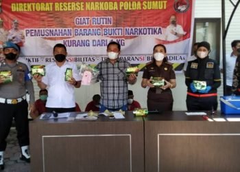 selengkapnya>Medan, POL | Direktorat (Dit) Reserse Narkoba Polda Sumut memusnahkan barang bukti narkotika jenis sabu hasil penangkapan dari berbagai lokasi...