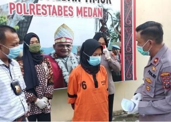 selengkapnya>Medan, POL | Tanti Novita Damanik (35) warga Jalan Datuk Kabu, Pasar 3, Kecamatan Medan Tembung, terlihat lesu saat digiring...