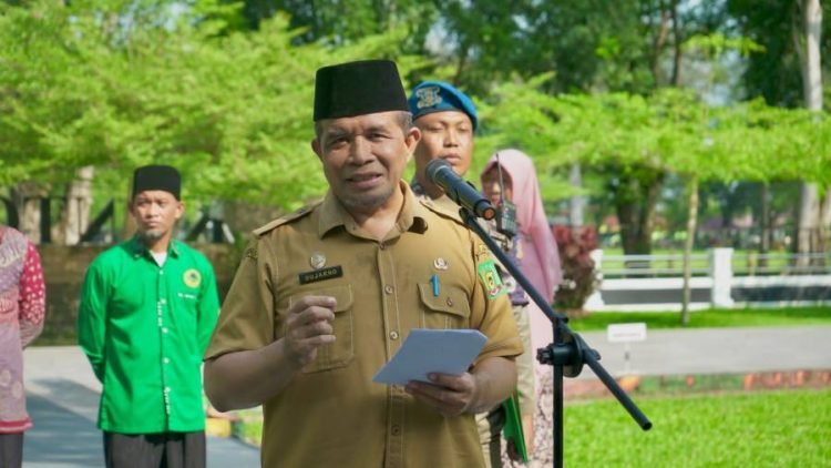 Langkat, POL | Pelaksana Tugas (Plt) Bupati Langkat H.Syah Afandin SH diwakili Staf Ahli Bid SDM Sosial dan Kemasyarakatan H.Sujarno, S.Sos, M.Si melepas rombongan Mahasiswa Kuliah Kerja Nyata (KKN) Sekolah Tinggi Agama Islam Jam’iyah Mahmudiyah (STAI – JM) Tanjung Pura, di halaman Kantor Bupati Langkat, Senin (05/02/2024)
