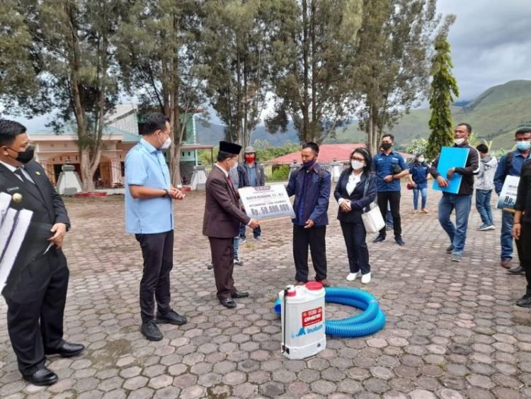 Penyerahan digelar di halaman Kantor Bupati Samosir, Selasa (27/04/2021). Dan diserahkan Bupati Samosir Vandiko T Gultom bersama Anggota DPR RI Fraksi Partai Nasdem Dapil Sumut Martin Manurung, SE, MA.