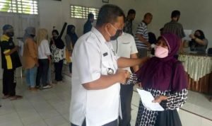 Labuhanbatu, POL | Sebanyak 2.393 kepala keluarga yang terbagi di sembilan Kelurahan yang ada di Kecamatan Rantau Selatan menerima bantuan sosial tunai (BST) yang digelar di aula kantor camat Rantau Selatan Jalan K.H Dewantara Rantauprapat, Rabu (25/11/2020).