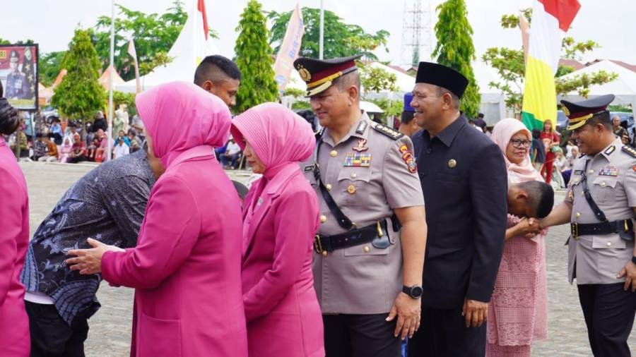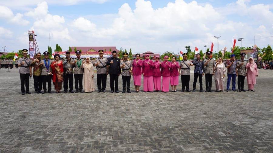 Plt Bupati Langkat H.Syah Afandin SH hadiri upacara penutupan pendidikan, pelantikan dan pengambilan sumpah Bintara Polri Gel-I T.A 2023, bertempat di SPN Hinai Langkat, Kamis (6/7/2023).