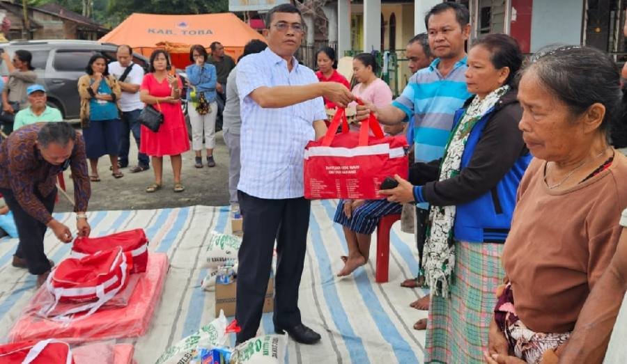 Atas peristiwa itu, Pemkab Toba menyerahkan bantuan sosial berupa material bangunan, sembako, dan beberapa barang bantuan dari Kementerian Sosial (Kemensos) RI pada Sabtu siang yang diserahkan langsung oleh Sekretaris Daerah Kabupaten Toba, Augus Sitorus didampingi Kepala Dinas Sosial Toba Lalo Hartono Simanjuntak, Plt Kadis PUPR Sofian Sitorus, Camat Bonatualunasi, Judiman Silitonga dan Kepala Desa Silombu Juanda Tambun.