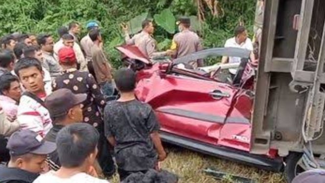 “Di dalam mobil, mereka ada tujuh orang. Dua yang di depan selamat. Tapi lima yang di belakang terhimpit truk tronton,” sambung Syahrizal.