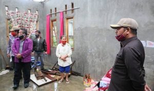 Sebelum ke tempat penampungan, Bupati Nikson bersama rombongan terlebih dahulu meninjau langsung kondisi beberapa rumah warga yang rusak akibat bencana angin puting beliung yang terjadi Sabtu sore.