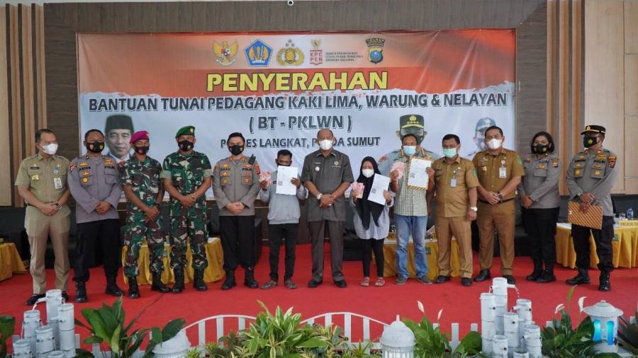 Langkat, POL | Sejumlah 6.000 pedagang kaki lima dan warung (PKLW ) serta 13.600 nelayan di Kabupaten Langkat menerima bantuan langsung tunai (BLT) sebesar Rp600.000 perorang, Selasa (29/3/2022).