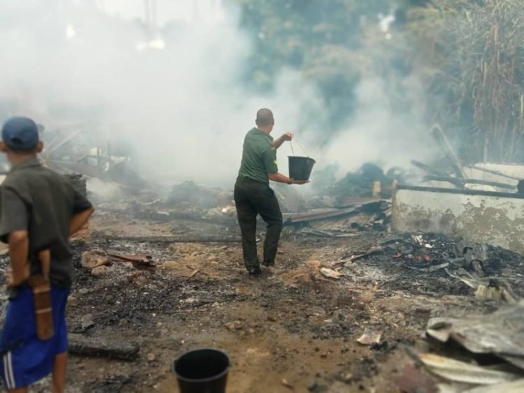 “Personel Koramil Sibolangit diturunkan sebanyak 3 orang dipimpin Sertu Edi Sugiarso, membantu warga melaksanakan pengamanan serta pemadaman dan mengumpulkan sisa sisa barang warga yang masih bisa dipergunakan,” ucap Danramil Sibolangit Kapten Ares. (Met)