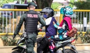 Jakarta, POL | Personel Polisi Wilayatul Hisbah melakukan penertiban kepada pada pengendara motor khususnya perempuan yang duduk mengangkang di Lhokseumawe, Aceh, Senin (5/8/2019)