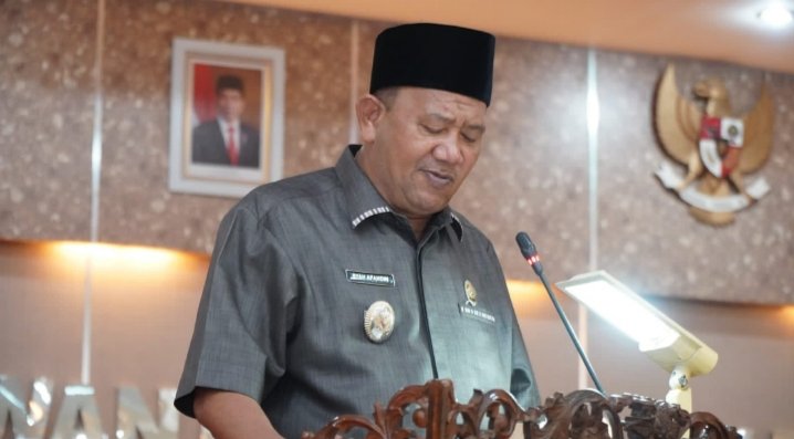Stabat, POL | Pelaksana Tugas (Plt) Bupati Langkat H Syah Afandin SH menyampaikan penjelasan tentang LKPJ (laporan keterangan pertanggung jawaban) Bupati Langkat Tahun Anggaran (TA) 2021 pada paripurna DPRD Langkat, di Gedung DPRD Langkat, Senin (28/3/2022).