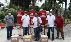 Tarutung, POL | Para alumni SMAN-1 Siborongborong memberi sumbangan berupa washtafel, berbagai alat pelindung diri (APD) dan vitaman kepada Pemkab Taput untuk diberikan kepada warga Taput.