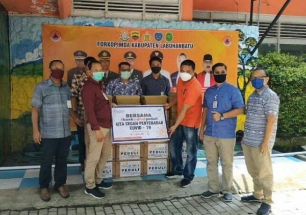 Rantauprapat, POL | Ketua Gugus Tugas Penanganan Covid-19  Kabupaten Labuhanbatu Andi Suhaimi Dalimunthe melalui Sekretaris Gugus Tugas, Ati Muchtar Maulana Hasibuan, menyampaikan apresiasi kepada Bank Sumut Cabang Rantauprapat atas kepedulian terhadap penanganan Covid-19.