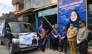 Sibolga, POL | Anggota DPR RI Dra. Hj. Delmeria memberikan bantuan kepada warga kota Sibolga berupa 3000 Paket Sembako, Pelepasan Mobil Distri busi sembako tersebut turut dihadiri Wali Kota Sibolga Drs. HM. Syarfi Hutauruk