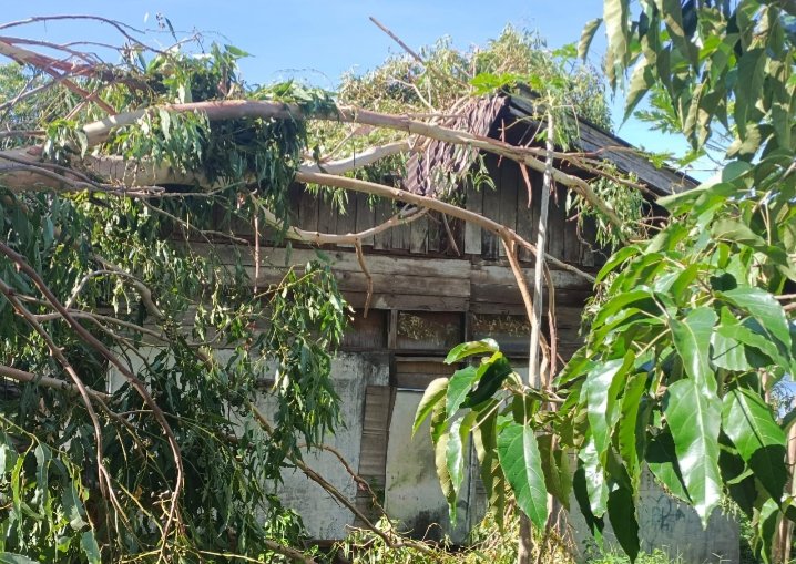 Kerusakan lain yang dialami warga, selain ada diterbangkan angin, ada yang ditimpa bambu dan ditimpa kayu (seperti foto).