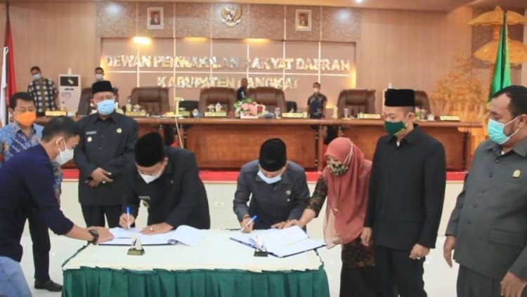 Pengesahan, ditandai penandatanganan berita acara persetujuan bersama, antara Bupati Langkat Terbit Rencana PA dengan ketua DPRD Langkat Surialam berserta wakil ketua DPRD Langkat Donny Setha dan Antoni, pada rapat paripurna pengesahan Ranperda APBD Kabupaten Langkat TA 2021 menjadi Perda, digedung DPRD Langkat, Stabat, Minggu (6/12/2020).