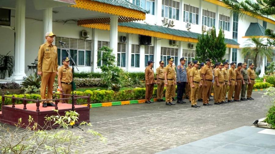 Langkat, POL | Plt Bupati Langkat H.Syah Afandin SH yang di wakilkan oleh Sekda Kab.Langkat H.Amril, S.Sos, M.AP menjadi Pembina Apel Gabungan Aparatur Sipil Negara (ASN) di Lingkungan Pemerintah Kabupaten Langkat bertempat di Halaman Kantor Bupati Langkat, Senin (4/11/2023).